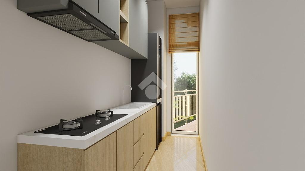 La soluzione abitativa proposta si sviluppa al piano secondo ed è composta da soggiorno-cucina, due camere da letto, un bagno, un balcone, doppio ripostiglio, posto auto scoperto.